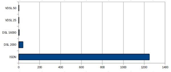 Huch, selbst DSL 2000 sieht da schon recht gut aus, oder? Ganz zu schweigen von DSL 16000.